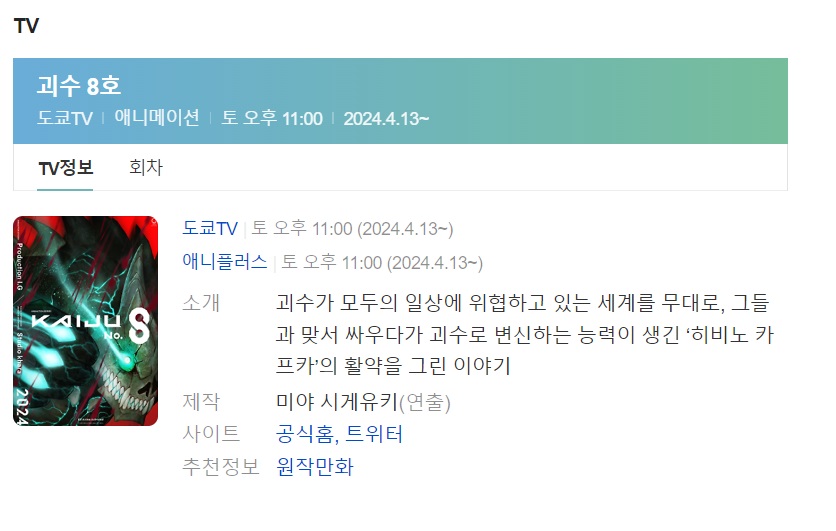 오늘 1화 리뷰는 '괴수 8호' 라는 애니 입니다.